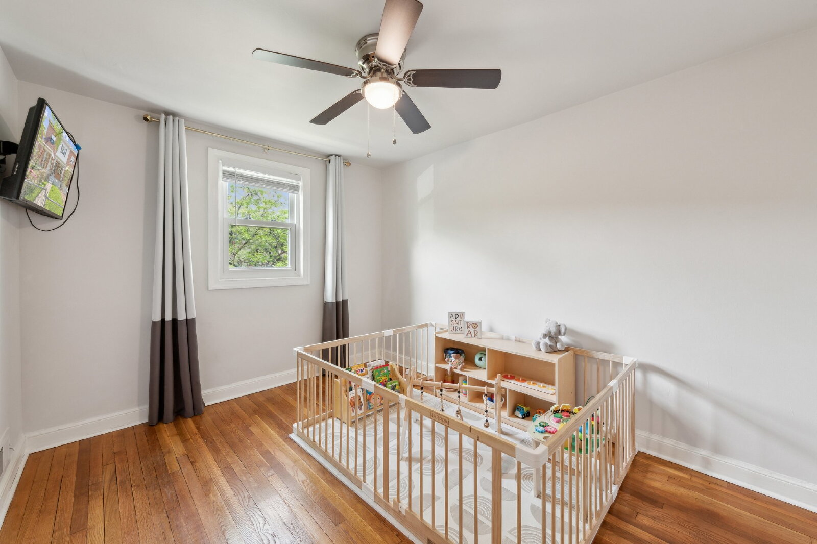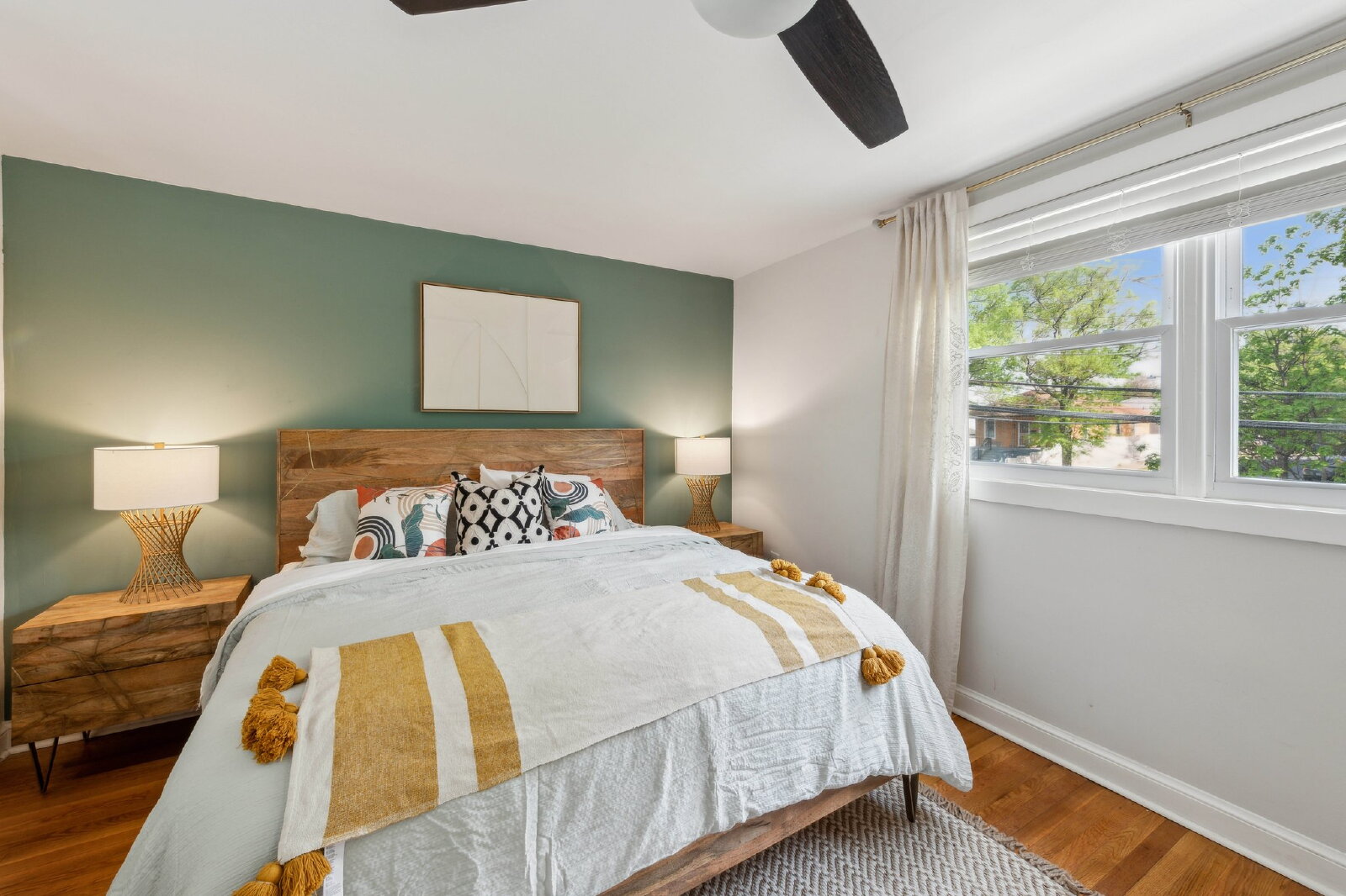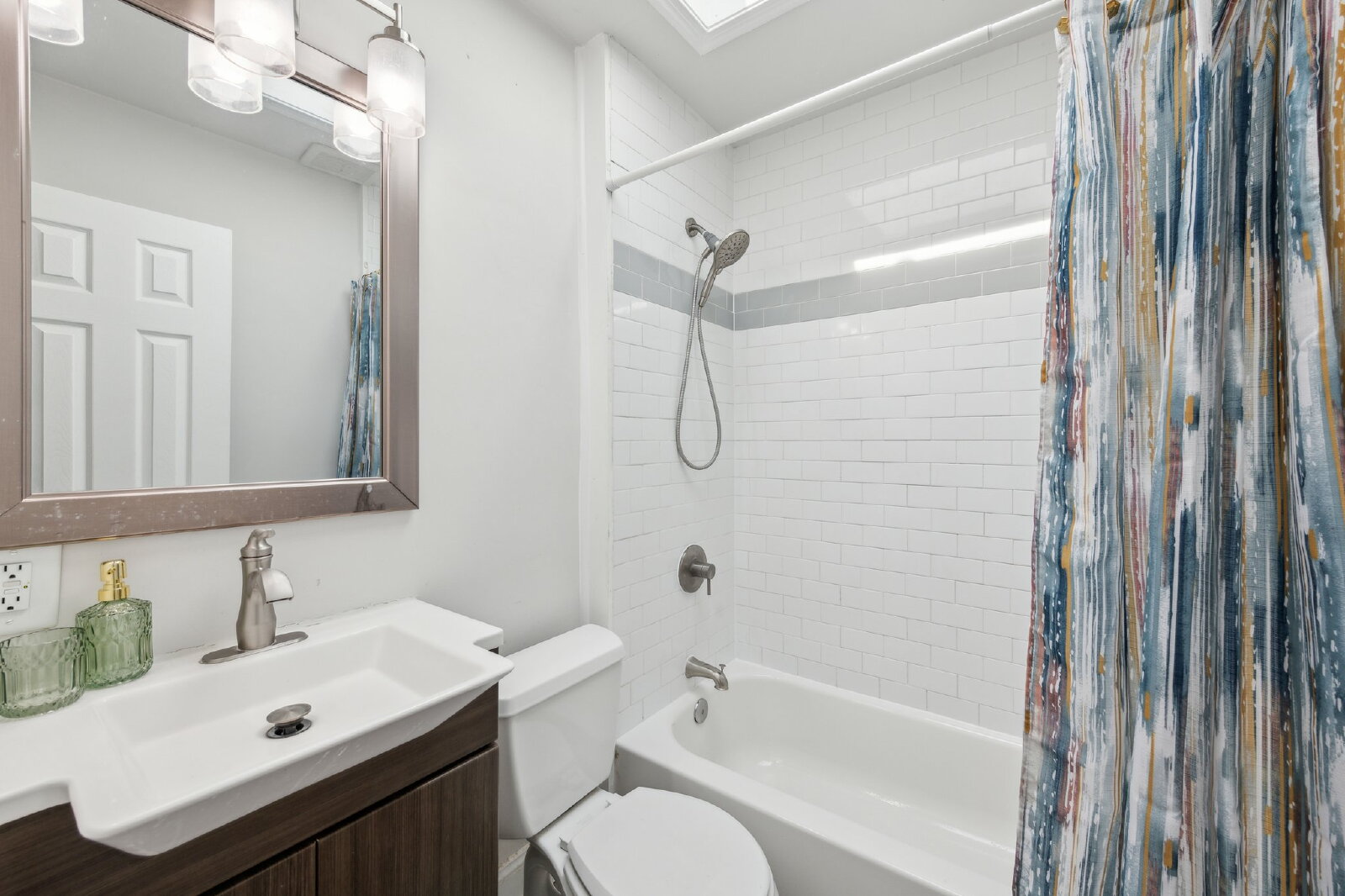 Upstairs, you’ll find three well-sized bedrooms and a full bath illuminated by a skylight, along with hardwood flooring throughout. The lower level offers a flexible finished space with a second full bath, in-unit washer and dryer, and direct walk-out access to the backyard — ideal for a home office, guest suite, or workout area.